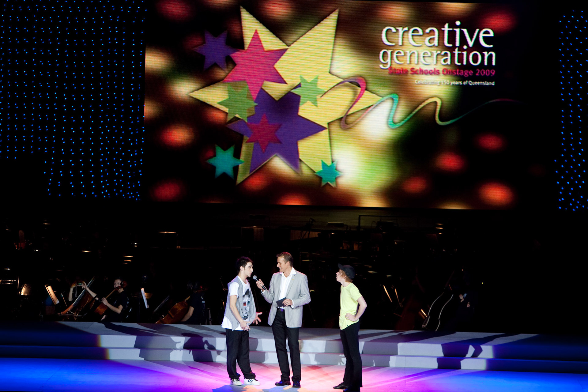 Branding and project management for the schools stage spectacular which was held at the Brisbane Entertainment Centre and broadcast on Australian televison. Involved all print and digital media including logo, stage and screen graphics, performer t-shirts design, printed program, merchandise for sale and more.
